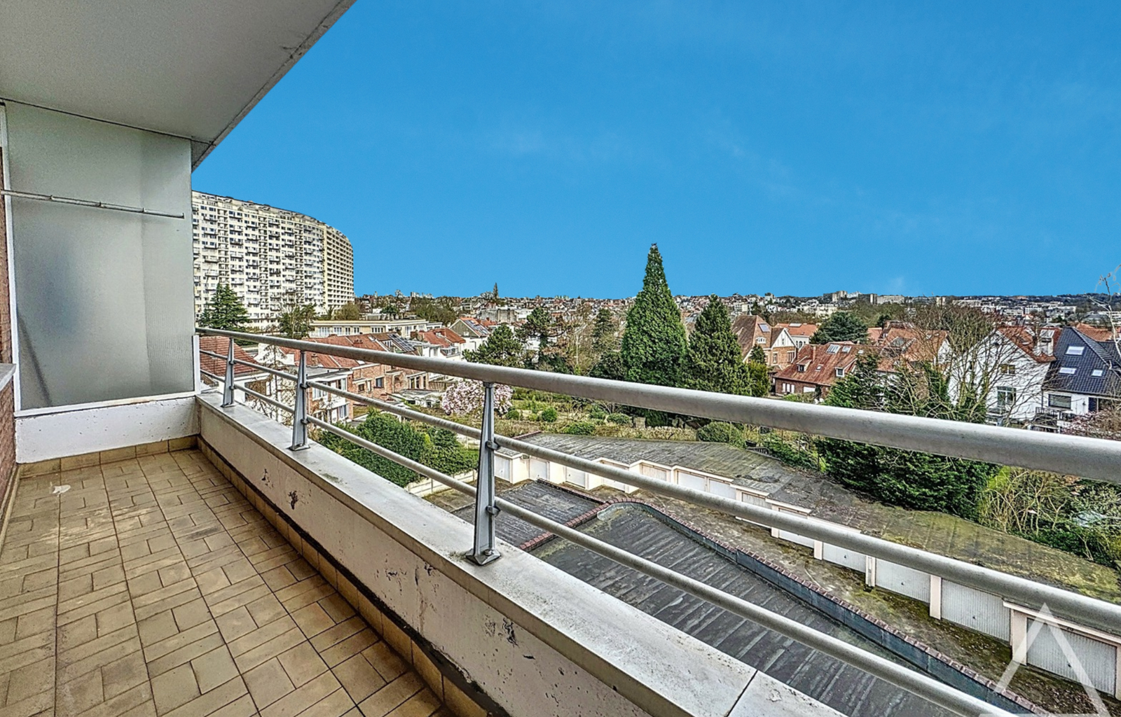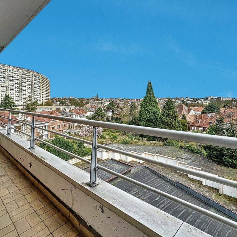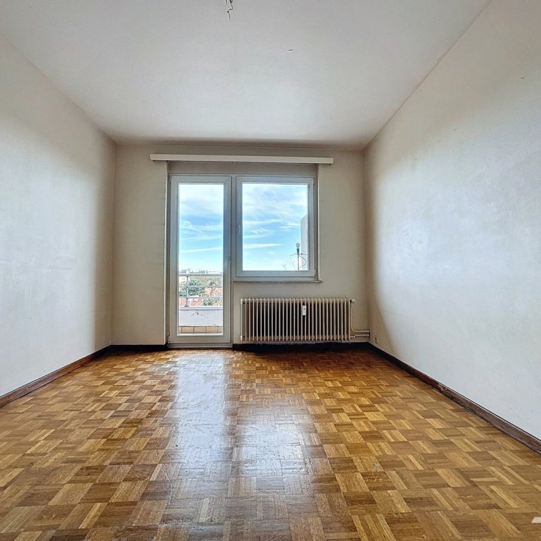 Caron Real Estate a le plaisir de vous présenter en exclusivité ce spacieux appartement de +/- 98m² (PEB) à rafraichir et avec un très beau potentiel. Situé au 5ème et dernier étage d’un petit immeuble, l’appartement se compose d’un hall d’entrée, d’un très grand living avec cheminée et accès à la terrasse avant et d’une cuisine donnant également sur la terrasse avant. Pour la partie nuit: un hall dessert 2 belles chambres dont une avec accès à une grande terrasse, une salle de bains, une toilette séparée et un grand débarras. Divers : Appel de charges: 250€/ mois (communs + provision d’eau + provision de chauffage). Chassis PVC double vitrage. PEB : G. Cave. Adoucisseur d’eau. Ce lumineux appartement vous séduira par le potentiel de ses espaces et les vues dégagées de ses terrasses. Sa localisation idéale à proximité du Parc Duden offre à ses occupants un accès direct tant aux commodités et transports qu’aux espaces verts. A VOIR ABSOLUMENT !