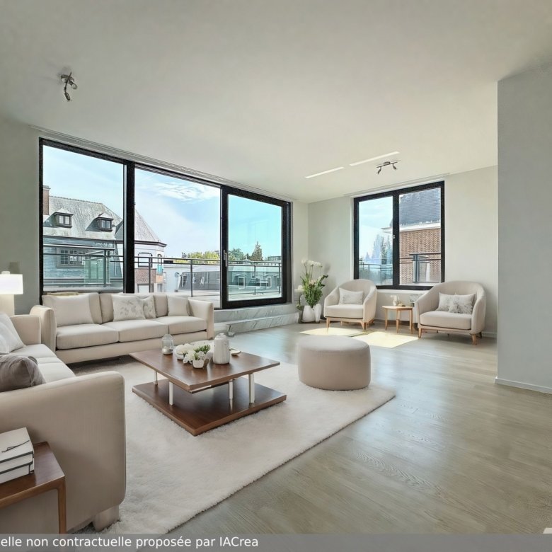 Caron Real Estate a le plaisir de vous présenter ce magnifique penthouse situé dans le quartier verdoyant de Roosevelt. Niché dans un immeuble moderne construit en 2013, ce penthouse comprend : un hall d’entrée, un spacieux séjour lumineux avec une cuisine ouverte entièrement équipée, un accès à une grande terrasse de ± 43 m² orientée sud-ouest, un hall de nuit, deux belles chambres dont une avec salle de bains, une salle de douche, une buanderie et des toilettes pour les visiteurs. Divers atouts : chauffage individuel au gaz, certificat de conformité électrique, porte blindée, local vélo/poussettes, local poubelle et cave, et deux emplacements de parking disponibles en supplément à 25 000€ chacun. PEB : B. À VOIR ABSOLUMENT ! Pour plus d’informations et pour organiser une visite, contactez david@caron-realestate.be ou appelez le 0488 38 44 06.