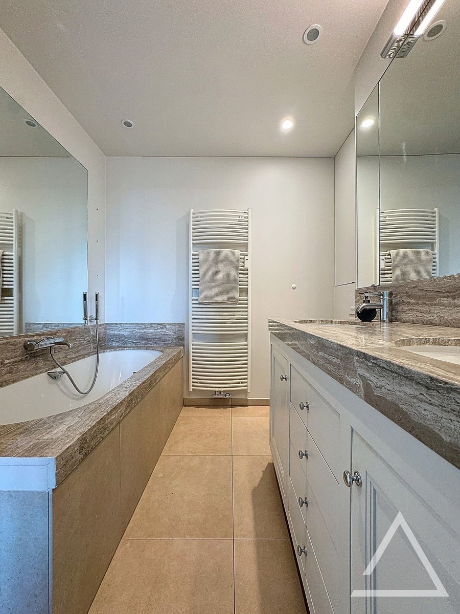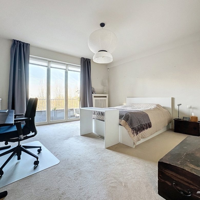 SOUS OFFRE! VISITES SUSPENDUES! Caron Real Estate a le plaisir de vous présenter en exclusivité ce superbe appartement de 187m² (PEB). Situé au coeur d’une copropriété boisée et en retrait de la route, l’appartement se compose comme suit: Un vaste hall d’entrée avec vestiaire desservant un double living avec accès à une grande terrasse. Une cuisine hyper-équipée avec accès à une deuxième terrasse et à une salle à manger pouvant également faire office de bureau ou chambre supplémentaire. Une buanderie avec entrée de service. Deux belles chambres avec leurs salles de bains attenantes. Viennent en complément de l’appartement au sous sol: une cave, une buanderie/cave, une chambre de service avec salle de douche, et un emplacement de parking double à vendre avec l’appartement: + 40.000€. Divers: Appartement reconnu à l’urbanisme comme appartement 4 chambres. PEB: G. Electricité conforme. Charges: +/- 400€ par mois (communs + provision d’eau + provision de chauffage). Cet appartement vous séduira par son standing, ses vues dégagées et la qualité de son environnement. A voir sans tarder! Infos et visites: info@caron-realestate.be ou 0473 30 00 31.