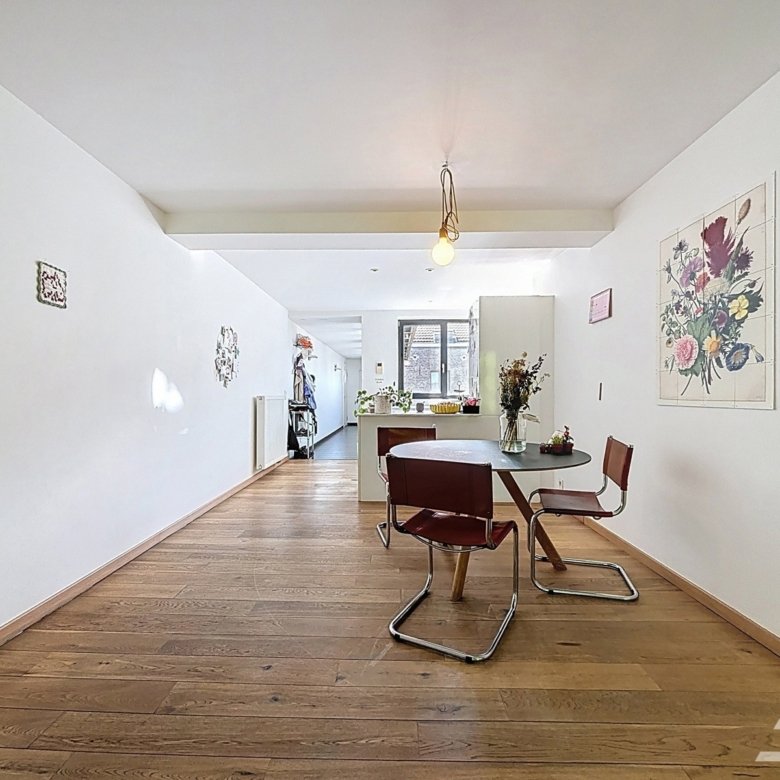 Caron Real Estate vous présente ce magnifique appartement de type loft, entièrement rénové en 2009 avec des matériaux de qualité, situé dans un quartier verdoyant et en plein essor. Niché au deuxième étage d’un immeuble avec ascenseur, il offre un spacieux hall d’entrée, une cuisine ouverte super équipée, une buanderie, un vaste séjour lumineux de ±40 m², ainsi que deux belles chambres de 13 m² et 15 m², chacune disposant de sa propre salle de bains ou salle de douche. L’immeuble dispose également d’un local vélos et d’un local poubelles. Chauffage individuel au gaz, cave. PEB : D-. Electricité conforme. Une opportunité à ne pas manquer ! Infos et visites : +32 495 16 36 57 et zoe@caron-realestate.be