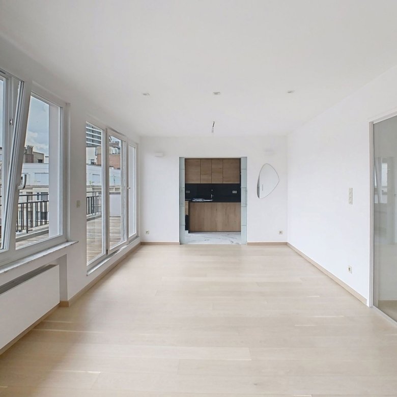 Caron Real Estate vous présente ce magnifique appartement/penthouse 3 chambres + terrasse situé proche du Châtelain, il se compose de : hall d’entrée, salon/salle à manger, cuisine super équipée, une salle de bain, une salle de douche avec toilette, une toilette séparée. Divers : double vitrage, cave, double parking + 150 € / mois, PEB : E+ . Charges : 350 € de provisions pour l’entretien de l’immeuble, l’assurance, l’eau et le chauffage. Infos & visites au +32 488 384 406 ou david@caron-realestate.be