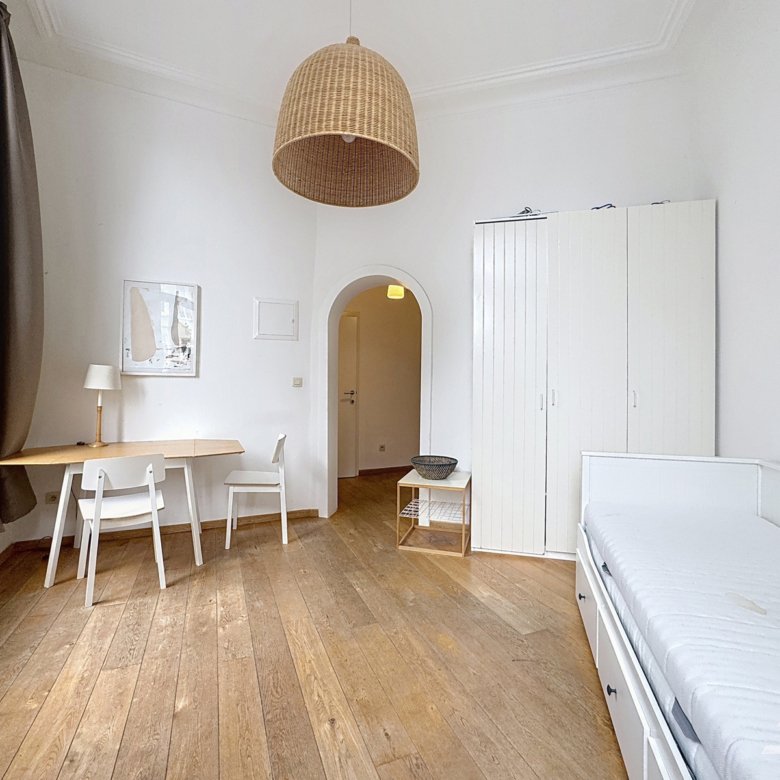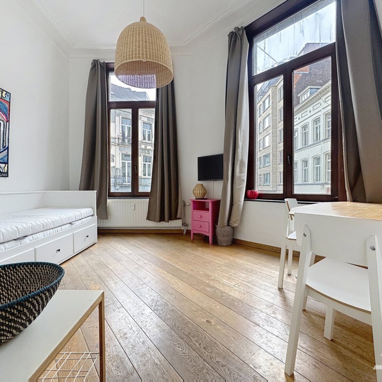 Caron Real Estate est ravie de vous présenter ce studio entièrement équipé et meublé proche de l’avenue louise et de la place Stéphanie. Il se compose d’un hall d’entrée avec un coin cuisine équipée, une pièce de vie avec coin nuit, une salle de douche avec une toilette. Divers : Double vitrage en bois, chaudière centrale au gaz, parlophone, 1er étage sans ascenseur. PEB G. Charges : Provision de 200€ pour les charges (forfait de 120€ pour les charges communes, l’assurance abandon de recours et wifi et provision de 80€ pour l’eau froide et chaude, chauffage). Pour obtenir de plus amples informations ou pour planifier une visite, n’hésitez pas à nous contacter par mail à : info@caron-realestate.be ou au 0484 96 47 12